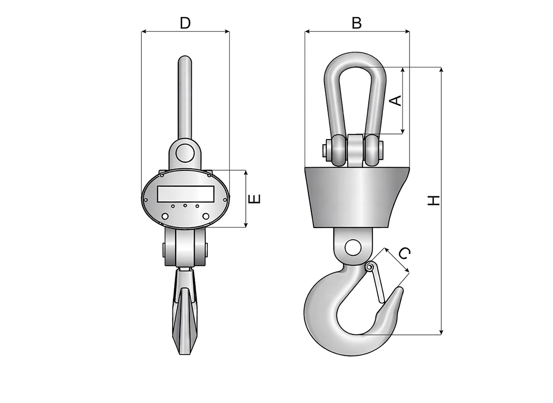 | Model | Part Code | Cap.(kg) | Accuracy | A(mm) | B(mm) | C(mm) | D(mm) | E(mm) | H(mm) | N.W(kg) | G.W. |